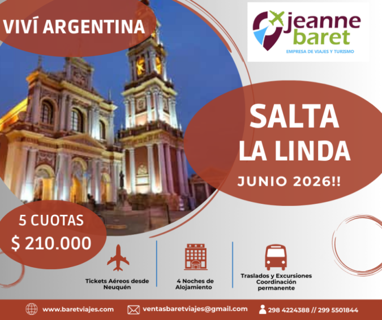 Sale NQN: 09.55 hs / Llega TUCUMAN 14.50 hs